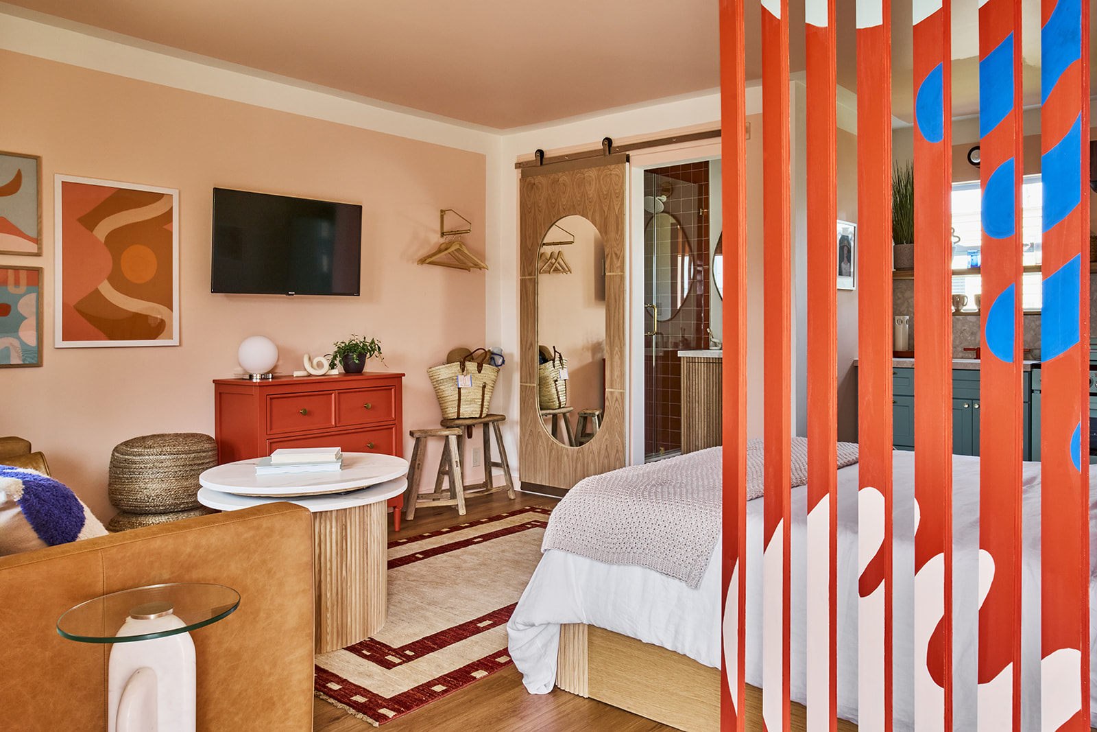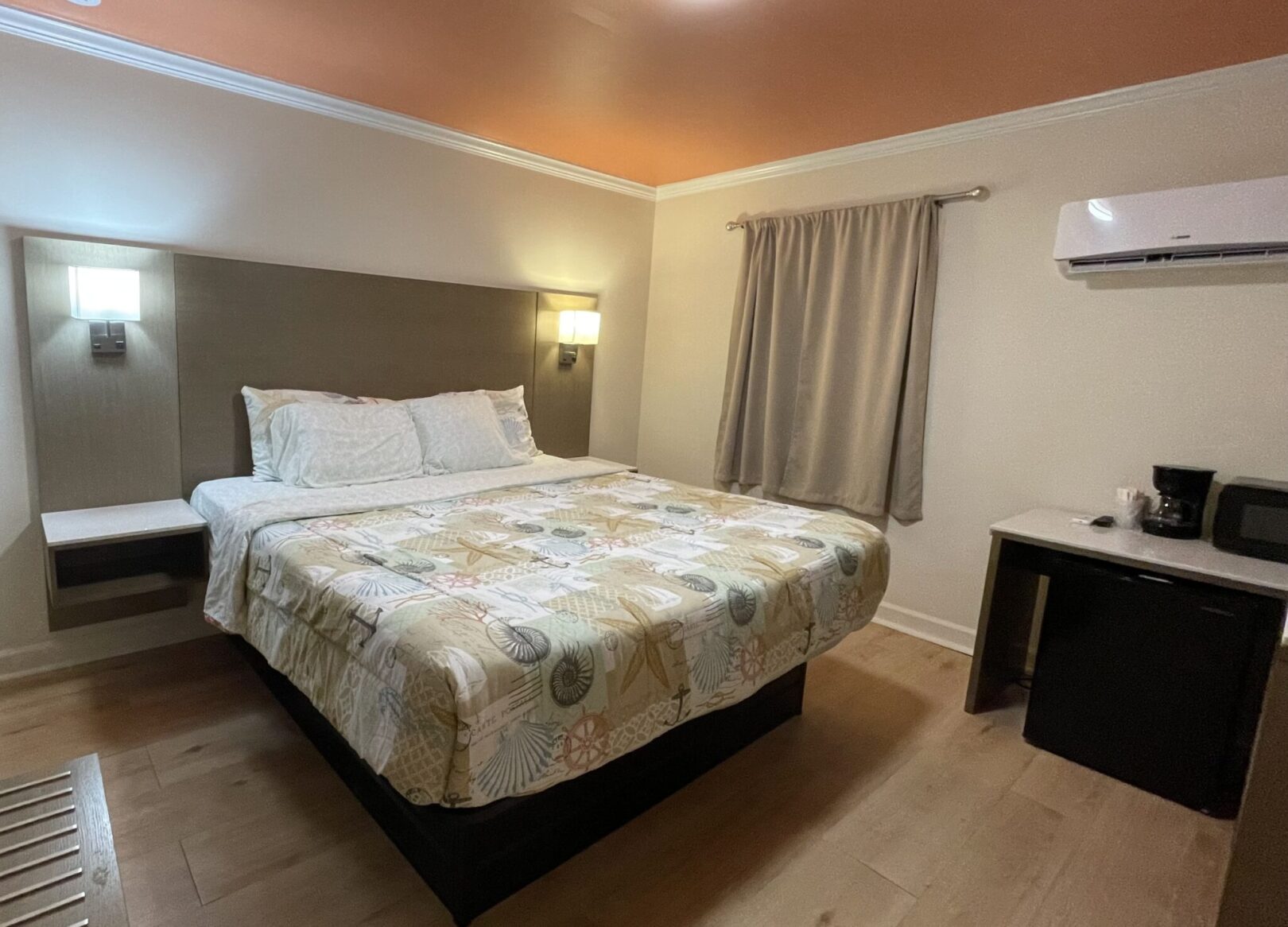 - Amenities: Air Conditioner, Bathroom essentials, Coffee Maker, Flat Screen TV, Free parking, Hair dryer, Heating, Kitchenette, Non-Smoking, Refrigerator, Wi-Fi